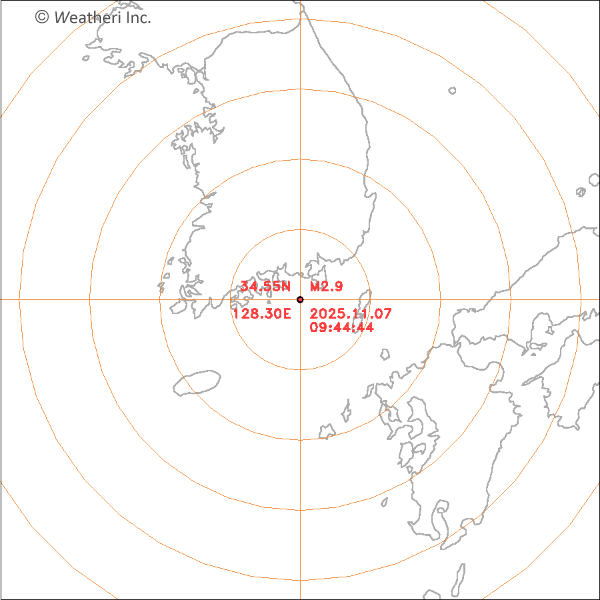 | 진앙 | 경남 통영시 남남서쪽 36km 해역 (위도 :34.55°N 경도 :128.30°E ) |