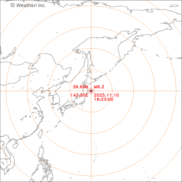 | 진앙 | 일본 이와테현 모리오카시 동쪽 201km 해역 (위도 :39.60°N 경도 :143.50°E ) |