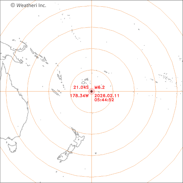 | 진앙 | 뉴질랜드 오클랜드 북북동쪽 1876km 해역 (위도 :-21.04°N 경도 :-178.34°E ) |